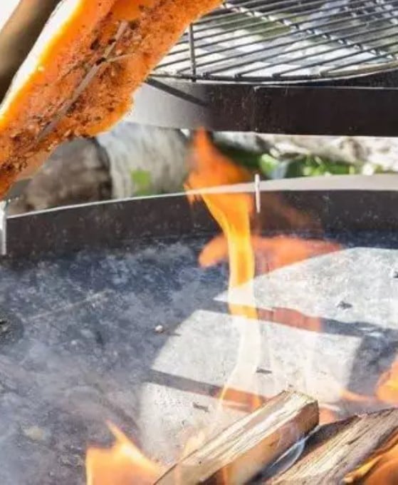Een hele zalm live gerookt in de Smoker en gevuld met groene kruiden
